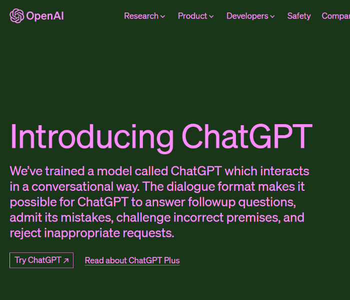 ChatGPT는 사용자와 주고받는 대화에서 인공지능에 따라서 질문에 답하도록 설계된 언어 모델이며, 오픈AI는 블로그 게시글을 통해 “ChatGPT가 대화 형식으로 추가적인 질문에 답하고, 실수를 인정하며, 정확하지 않은 전제에 대해서는 이의를 제기하고, 부적절한 요청을 거부할 수 있다”고 설명했다.